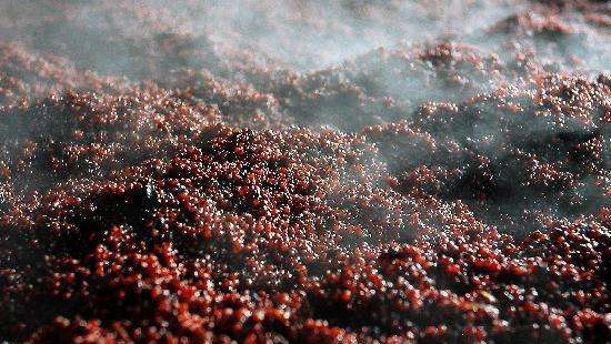 八次发酵是指红粮从下沙开始到烤七次酒结束要经历8次发酵过程。酱香酒酿造发酵过程为高温堆积发酵。高温堆积是入池发酵前的堆积发酵,高温温度要达到50℃左右,为入池发酵网罗、筛选、繁殖了大量微生物;高温堆积后再入池高温发酵,酱酒发酵温度高于其他工艺白酒。